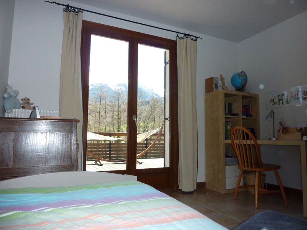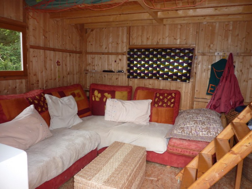 Our big garden (half an acre or 2300m2) opens out on two sides onto fields and forest, with a view across the forest to the Grand Colon mountain, part of the Belledonne mountain range. We’ve got plenty of toys and board games, bicycles that you can use, plus ping-pong table, large garden chalet which is a children’s play-house / sleeping area in the summer.