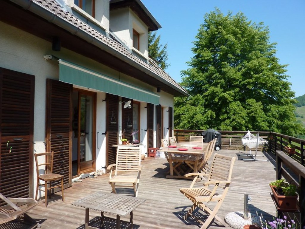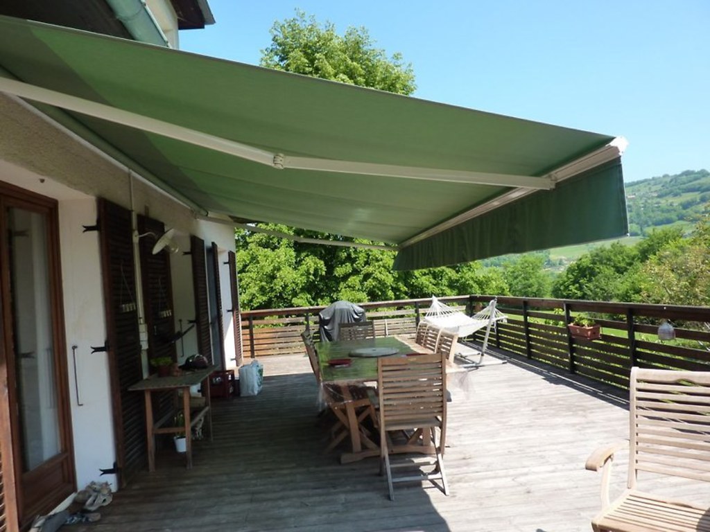 Our large mountain home has all modern comforts and is ideal for families, the main living area being open with an american kitchen, large dining area and living room with home cinema, stereo and a wood-pellet stove. The dining area has huge patio doors with a stunning view over the mountains, opening out onto our large terrace with gas bbq, hammock, and dining area with awning. There is also a bathroom and bedroom on this floor.